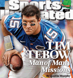 Sports Illustrated ran a cover story about Tim Tebow in their July 27, 2009 magazine. The title was “You Gotta Love Tim Tebow” with the tag line: “He’s a Heisman Trophy winner and a two-time national champion, but the Florida quarterback will tell you he does his most important and rewarding work off the football field.” http://sportsillustrated.cnn.com/vault/article/magazine/MAG1158168/index.htm